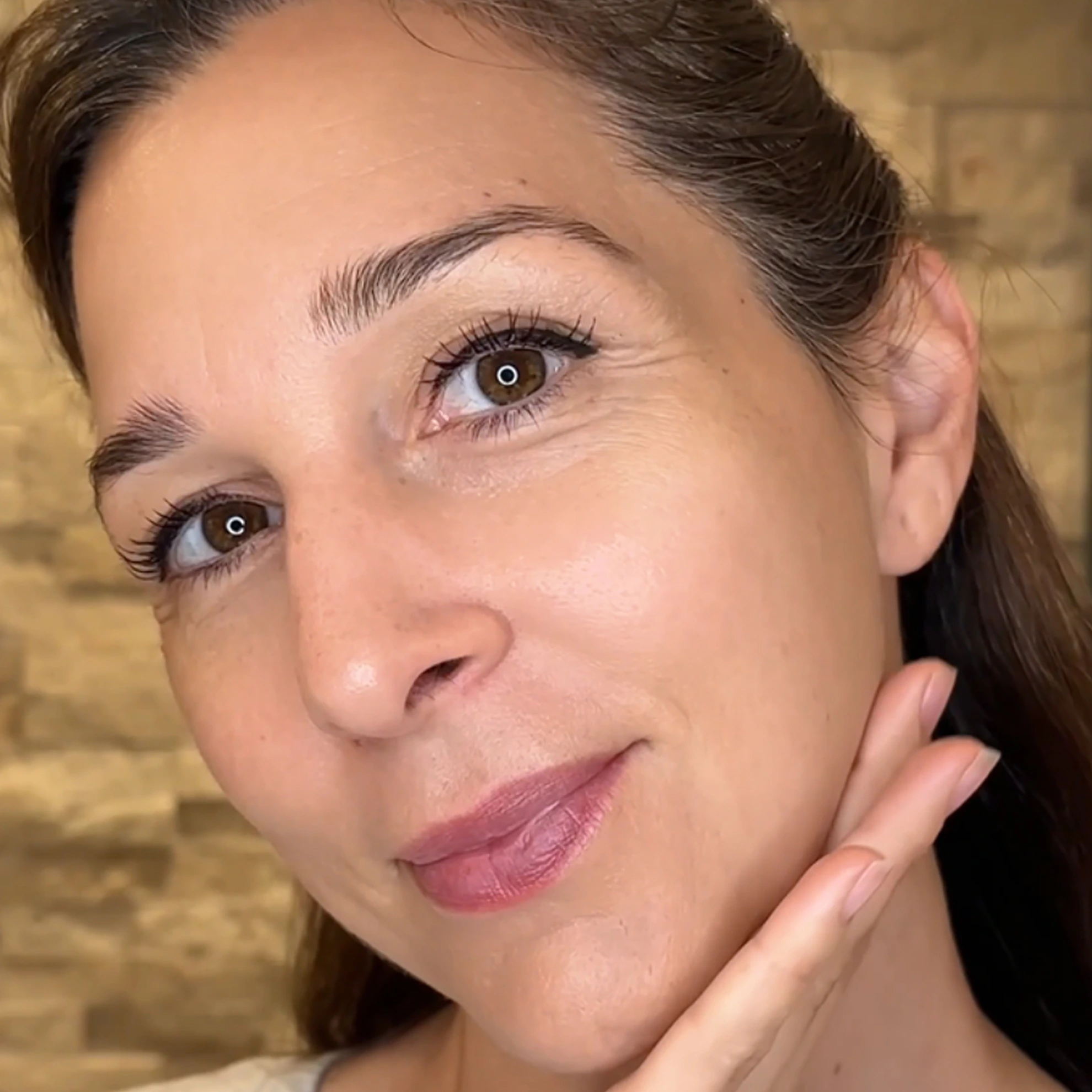 As hydration stays in the skin (instead of evaporating during the day), it often looks bouncier and more supple, especially in areas that tend to show texture first: lips, under-eyes, neck.